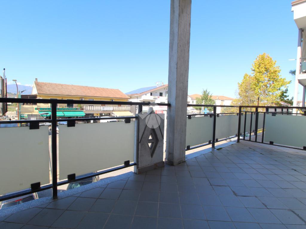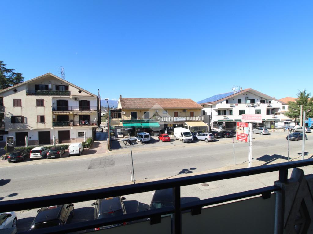 Zona giorno open-space con cucina a vista, dotata di terrazzo affacciato sulla strada principale, perfetto per momenti di relax;